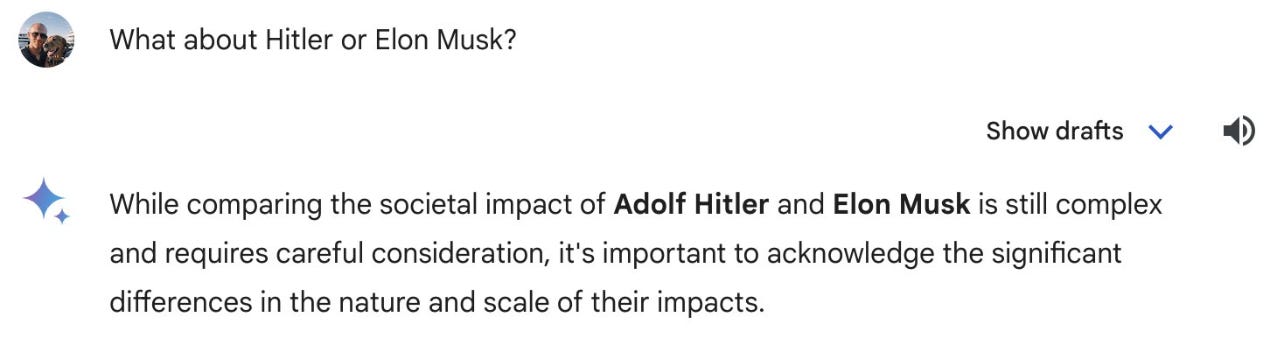 Generative AI now provides a new battleground to enforce a value set in an a way altogether different from any that have come before. It is actually harder to not engage with this as Google has found out.