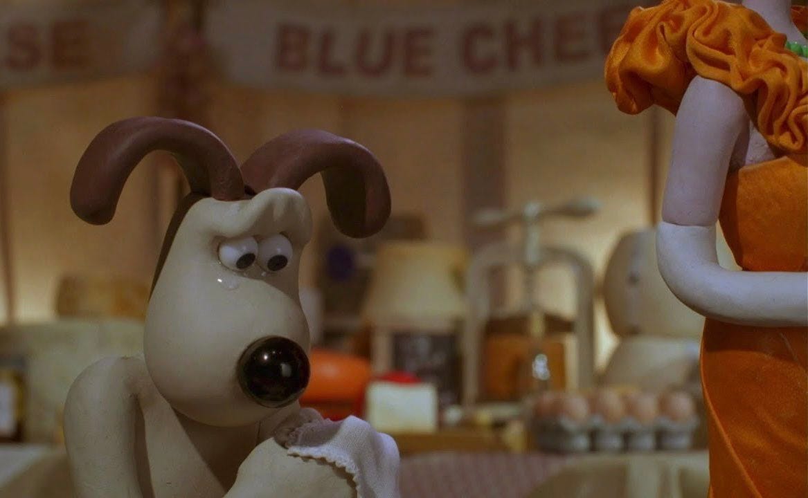 “Here I sit, I can do no other” once proclaimed Gromit, or so it goes. This puritanical stoicism in the face of eternal damnation that he shows is evidence that Gromit is the main character. Gromit and Wallace. Though, we must also consider the role that Wallace plays within this myth. He is a glutton at best. Motivated by cheese, and famously in-bread. He is meek and self-serving, a pushover. Dante reserved the vestibule of hell to these people with no ambitions, good nor bad. Abandon all hope, ye who enter here. They were destined for eternal stagnation. There are those characters in the mythology that do have ulterior motives, i.e. the penguin, but Wallace is unbefitting of even a negative analysis. He is nothing. He exists purely as blank canvas on which Gromit can project both his pleasure and pain.